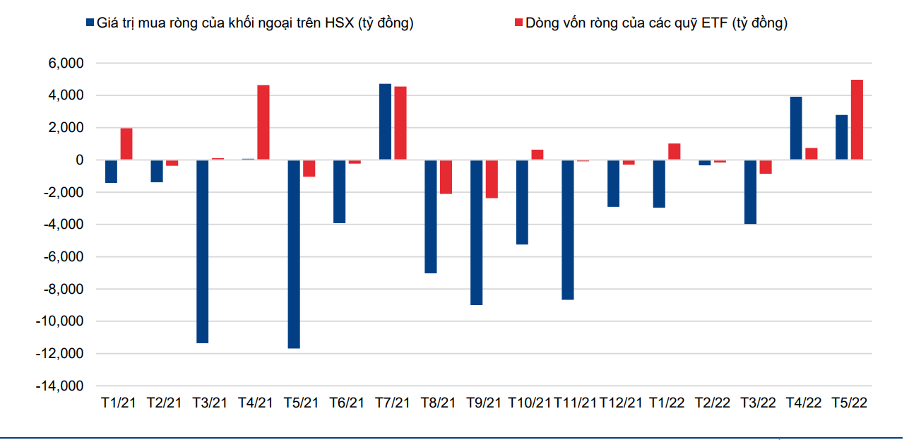Theo quan điểm của ông Huy, dòng vốn mua ròng khối ngoại trong thời gian qua xuất phát từ ETFs. ETFs trong thời gian qua là xu thế trên toàn thế giới và cũng không bất ngờ khi xu hướng trên rất được ưa chuộng trên thị trường Việt Nam.
