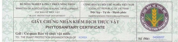 Giấy chứng nhận kiểm dịch thực vật nhập khẩu, quá cảnh và vận chuyển nội địa (Bản sao chụp và xuất trình bản chính để đối chiếu).
