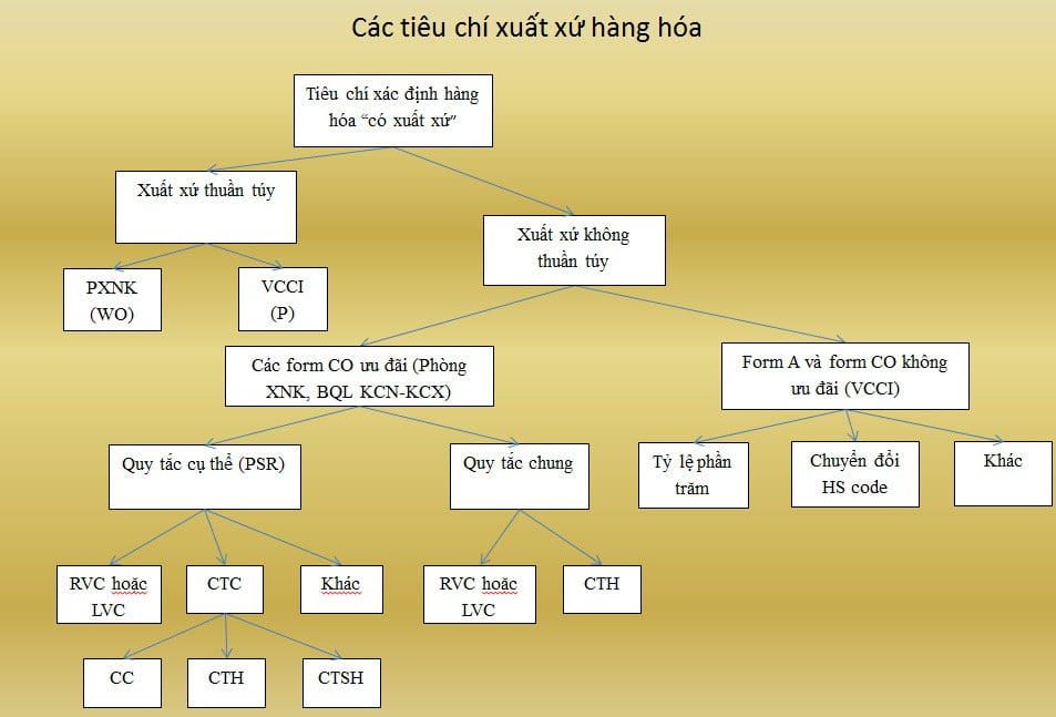 Để xem xét hàng hóa xuất nhập khẩu có đáp ứng được điều kiện hưởng C/O thì căn cứ xem xét tính toán theo tiêu chí xuất xứ gì?